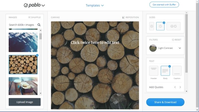 Buffer, the popular social media scheduling and management app, has created Pablo. It’s a lightweight design tool, intended to speed up and simplify the process of creating great visuals for social media posts. The intuitive interface means anyone can use it, no matter the level of skill. It is perfect for quick social media artwork, but it does have very limited functionality otherwise.