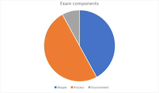 - The exam consists of three components: People (42%), Process (50%) and Business Environment (8%).