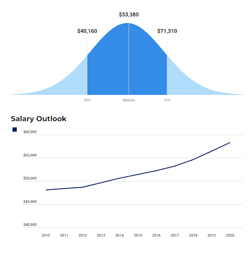 In the US, the median salary for 2020 was $ 53 380 per year. The top 25% earners received a median salary of $ 71 310, and the lowest 25% $ 40 160 per year. This is an indication that although the market for graphic designers is very competitive, the median salary earned is still something many people would consider pursuing.