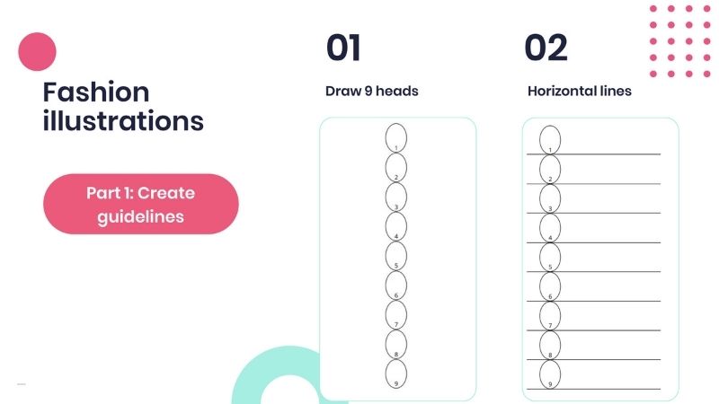 To draw your own fashion figure, follow the steps below.